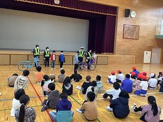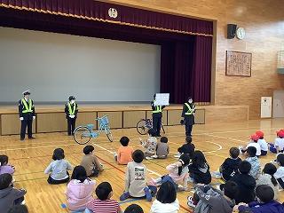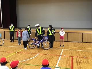 4月17日(月)に交通安全教室がありました。3,4年生は,体育館で交通指導隊の方々に自転車の乗り方や点検の仕方を教えていただきました。また,ヘルメット着用についての法改正があった話もありました。