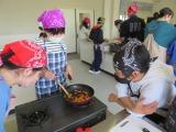 班ごとに協力し,野菜炒めを作りました。安全に留意しながら実習することができました。