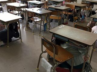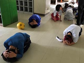 5月24日に,防災朝会がありました。防災主任の地震が起きたときの対応についての話から,安全な場所(①落ちてこない②倒れてこない③移動してこない場所)を判断して自分の身を守る対応をするということを確認しました。業間休みには地震を想定した放送避難訓練を行い,教室では机の下に入り,教室外ではダンゴムシのポーズをして身を守る様子が見られました。どんな場所でも自分の身を守る行動が着実に身に付いています。