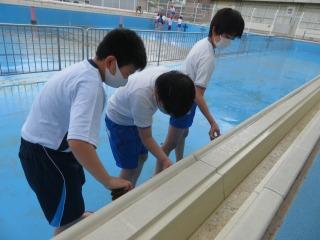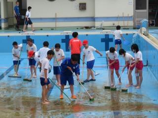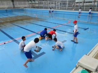 6月中旬から始まる水泳学習に向け,プール清掃を行いました。