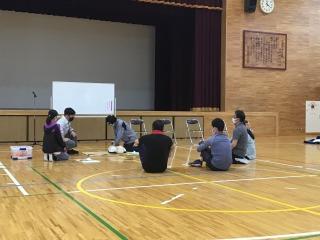 心臓マッサージが必要な場合の子どもの様子など,教員が水泳の指導をする際に必要な知識を教えていただき,人形を使用して心臓マッサージの実技も行いました。