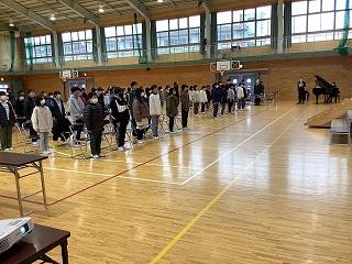 3/12(火)の2,3校時目,体育館で卒業式の予行練習が行われました。参加した5,6年生は来週に迫った卒業式当日に向け,卒業証書授与や呼びかけなどの練習に取り組みました。残りの期間で,より良くなれるよう,返事仕方の大きさや起立,着席のタイミングなどを修正してがんばります。