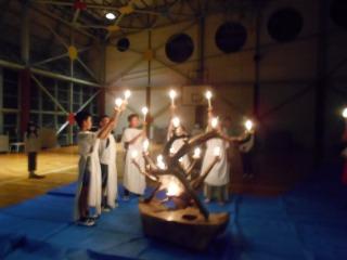 夜のキャンプファイヤーは,残念ながら予定していた時間帯に雨が降り,キャンドルサービスに変更となりましたが,とても盛り上がっていました。
