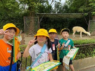 9月26日(火)に,1学年の校外学習で八木山動物公園に行きました。子どもたちは,間近で見る動物に興奮した様子で,楽しそうに園内を見学していました。グループ活動では,リーダーを中心にめあての動物を探し,動物ビンゴを完成させました。