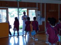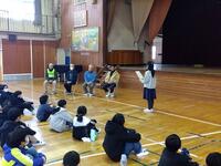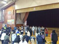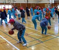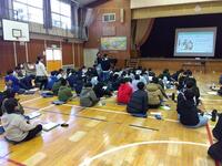 今日は地元プロバスケットボールチームである仙台89ersがドリームキャラバンとして増田西小を訪問です。
