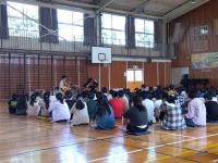 今日の4時間目に芸術鑑賞会が体育館で行われました。