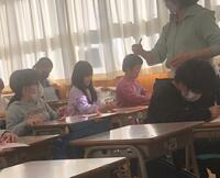 けん玉の先生を2人お招きし、けん玉教室を開きました。まずは、先生のお手本を見て、軽々と玉を皿に乗せたり、穴に入れたりしているのでびっくり!先生方からけん玉のコツを教わって、たくさん練習しました。