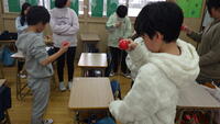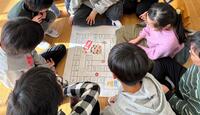 「お正月の遊びを楽しもう。」ということで、すごろくをしました。子供たちは、マスに止まるとそのイベントに一喜一憂です。伝統の遊びで、楽しい時間を過ごすことができました。