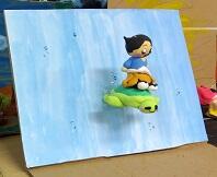 4年生の教室に用事があったので行ってみたら・・・ロッカーの上に図工の作品があります。