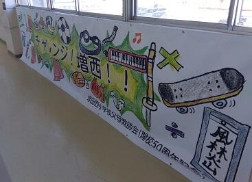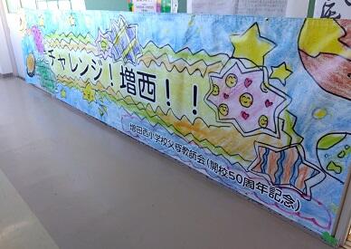 開校50周年を祝ってPTAで作った横断幕が先週末に届きました。