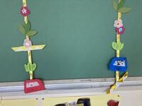 子供たちが作った飾りです。だるまには、漢字一文字の願いが書かれています。