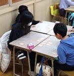 休み時間校舎を歩いていると4年生が机を合わせて何かしていました。