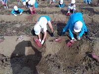 子ども会育成会や近隣の農家の方に助けていただきながら掘り進めました。