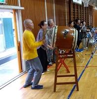 3年生の桝取り舞は保存会の方が足を運んで一緒に練習をしていただいています。