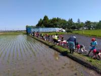 苗の植え方などの説明を聞いた後、田んぼに向かいます。
