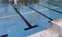 プールサイドに生えている雑草を取ったり、泥がたまった底面を磨いたり、全員で分担しながら進めます。