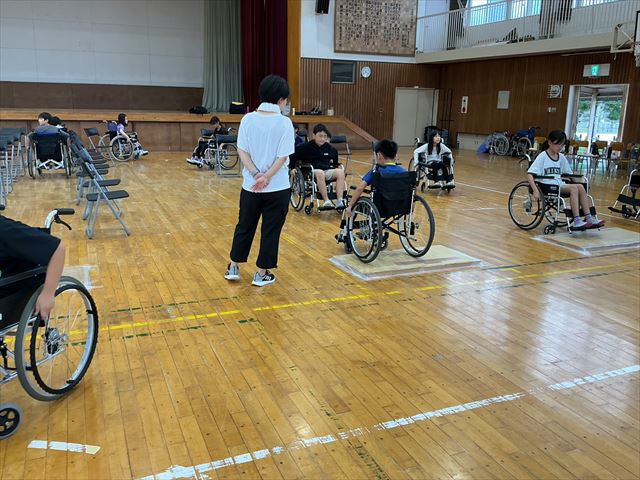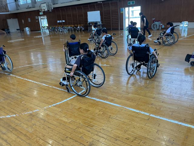 名取市社会福祉協議会の方々に来ていただき,車いすと白杖体験をさせていただきました。