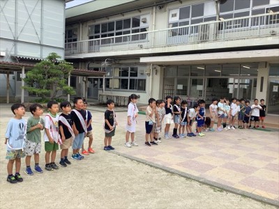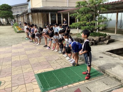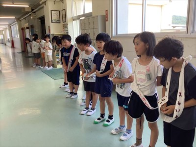 最後は3組のみんなです。暑さに負けず,おなかの底から大きな声であいさつができました。