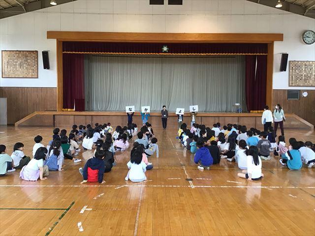 4月18日(木)に,2年生になって初めての学年集会を開きました。子供たちは話す人に体を向けて,最後までしっかりと集中して話を聞いていました。その後,2年生としての学習や生活の約束を聞いた後に「集合ゲーム」をして盛り上がりました。