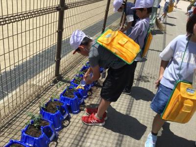 1年生の時はアサガオを育てた植木鉢。今年は野菜を育てます。