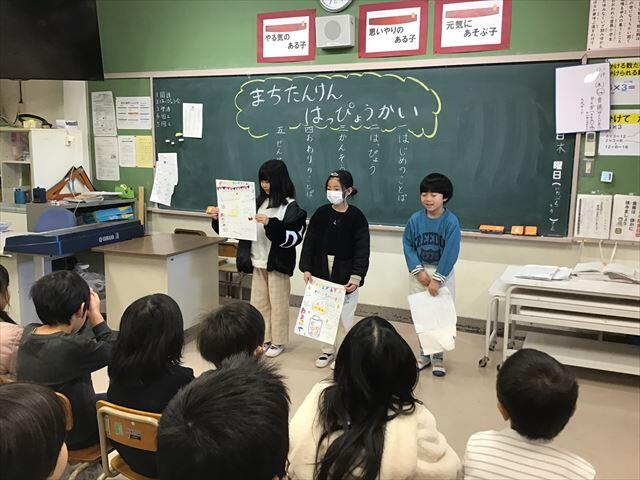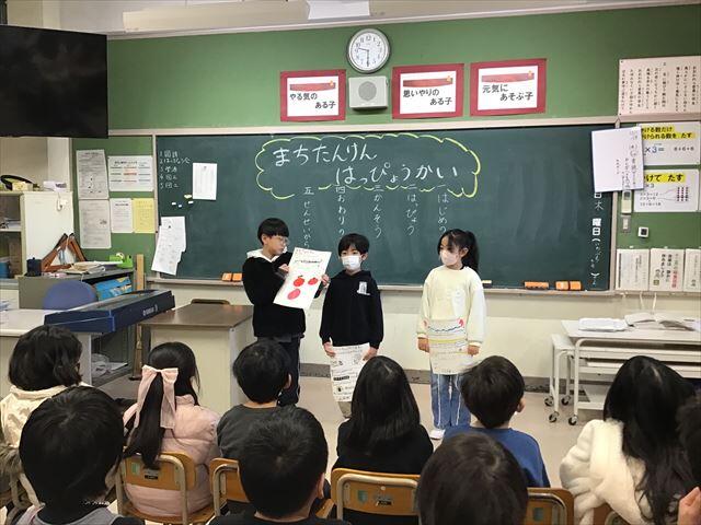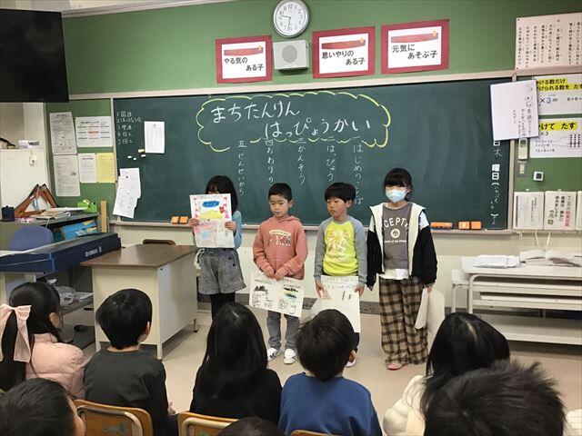 国語科の「町探検で見つけたことを話そう」で1年生に発表をしました。