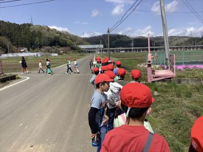 学校の周りをみんなで歩き、どんな施設があるのか、土地の様子はどうかなどを見て来ました。