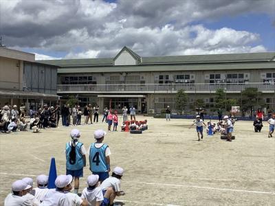 タイヤ引きリレーでは,各クラスで作戦を立て,励まし合いながら,心を一つに頑張りました。