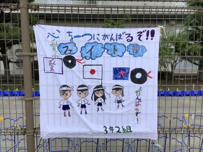 クラスごとに制作した旗が,気持ちよさそうに子供たちの頑張りを見守ってくれていました。