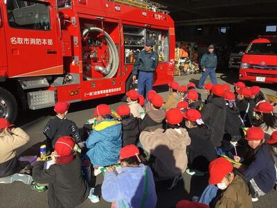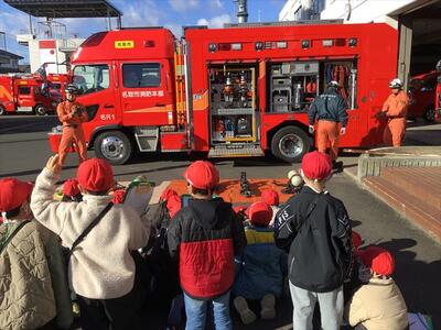 社会科の「火事からくらしを守る」の学習で、名取市消防署へ校外学習に行きました。