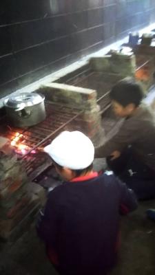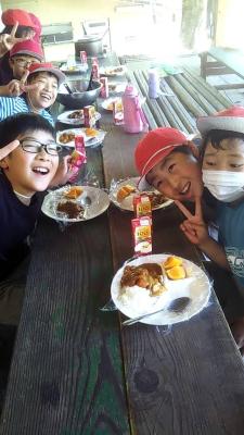作業の分担は、調理係、食器・盛り付け係、飯ごう係、かまど係。