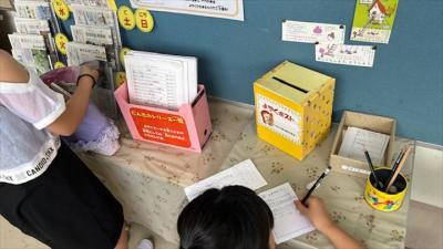 「読書ゆうびん」は、校内5か所にある赤いポストに出すと図書委員が届けてくれます。