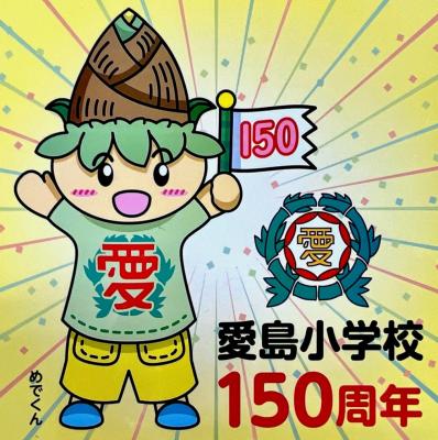 創立150周年記念として児童の作品から選ばれたキャラクター「めでくん」