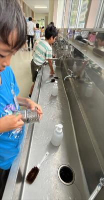 分担場所で気付いたところを一人一人が進んできれいにしていました。